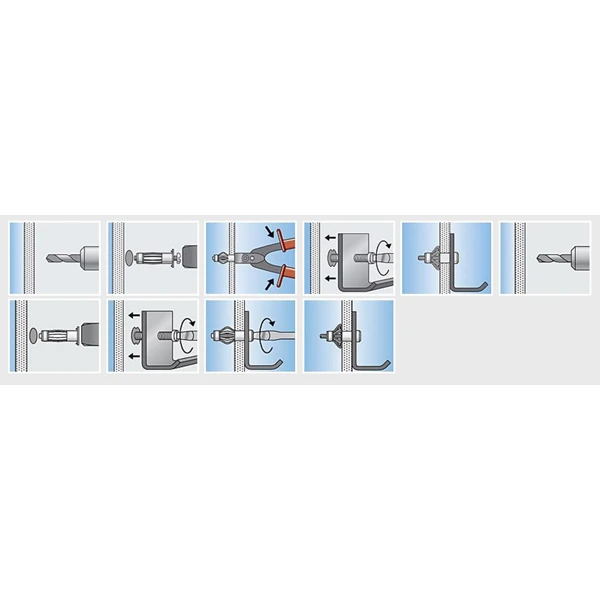 - La cheville métallique pour corps creux HM convient pour le montage en attente.
