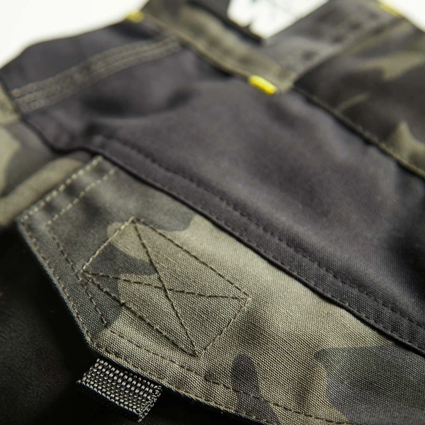 Avec renforts Oxford 600D (100% Polyester avec enduction PU et CORDURA®) sur les fesses, poches et bas de jambes.